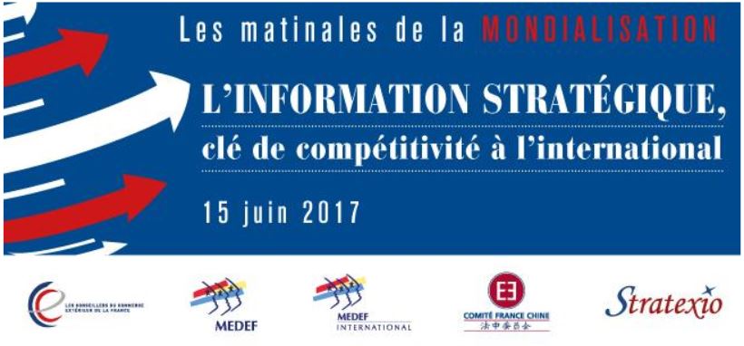 Matinale de la mondialisation consacrée à L'information stratégique, clé de compétitivité à l'international le jeudi 15 juin de 9h à 11h30 au MEDEF. La mondialisation est source indéniable d’opportunités de croissance pour les entreprises, mais…